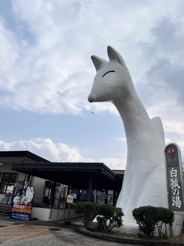 湯田温泉駅ではお馴染みの狐が出迎えてくれました🦊