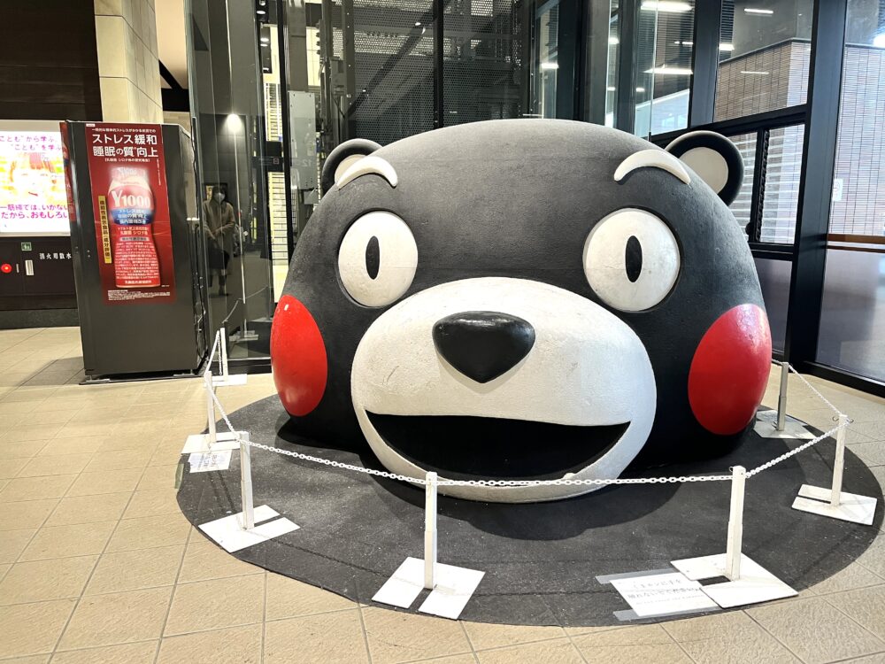 熊本駅ではくまモンが元気にお出迎えしてくれました!