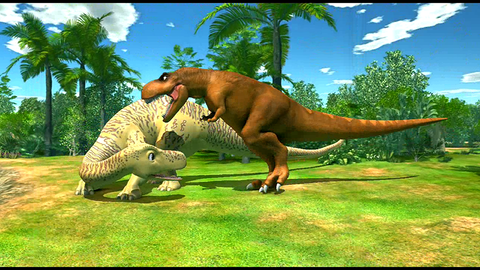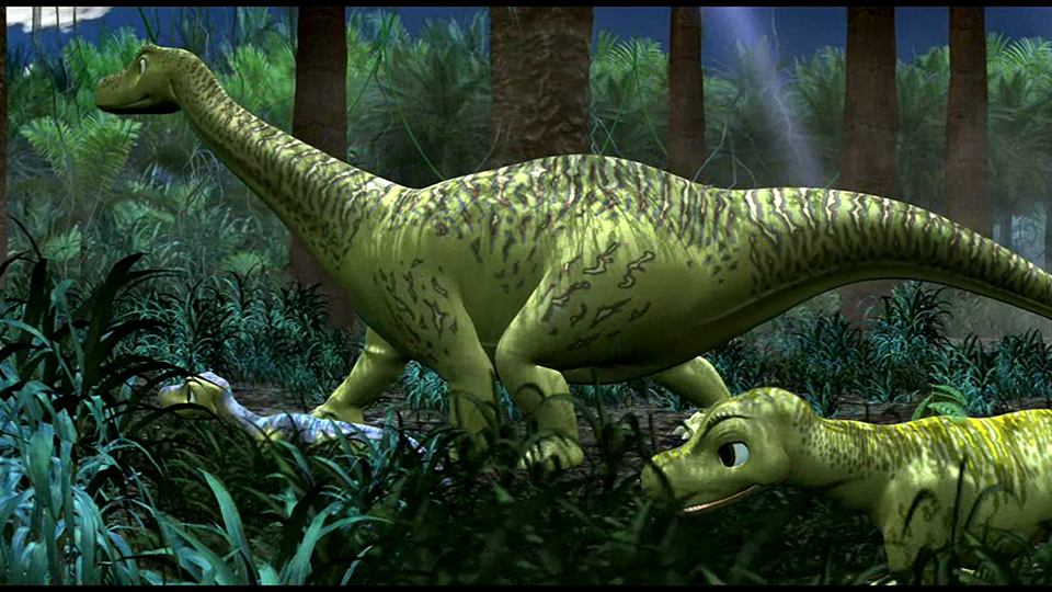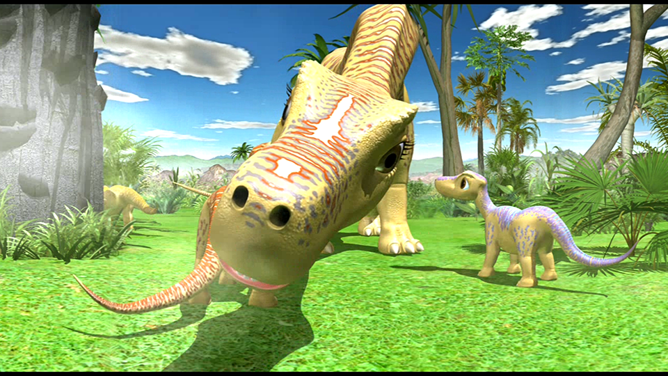 母子の恐竜の日常を描いたほのぼの系なので、子供から大人まで楽しめる作品です。とはいえ、子供の恐竜が水遊びをするシーンでの水滴の表現等見るべき個所も多く盛り込まれています。子供恐竜がエンドロゴを蹴飛ばして、対面から襲おうとしている肉食恐竜を倒すシーンは360度スクリーンを生かした作りになっています。